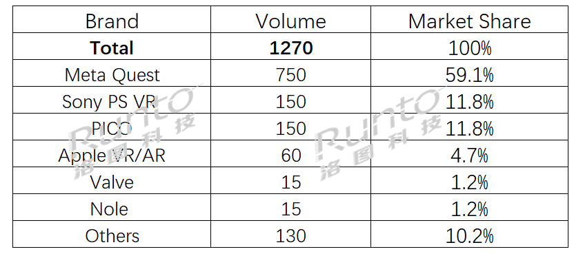 2023年全球VR設備市場品牌出貨量預測