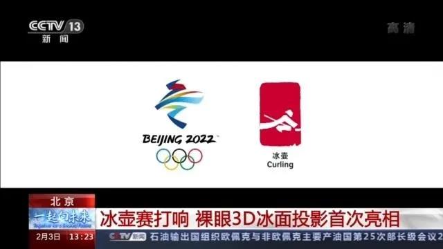 在2日開打的冰壺賽場上,裸眼3D冰面投影首次亮相,“裝點”賽場。