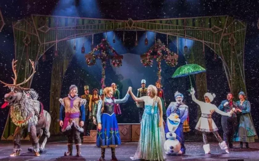 迪士尼郵輪《冰雪奇緣》舞臺劇,早期結(jié)合實體和數(shù)字技術(shù)的項目。它將傳統(tǒng)的劇院技術(shù)與最先進的技術(shù)相結(jié)合,創(chuàng)造出阿倫黛爾這一冰雪世界。運動追蹤視頻圖形與大型移動布景的結(jié)合,也有助于使游客完全沉浸在冰雪奇緣世界中。