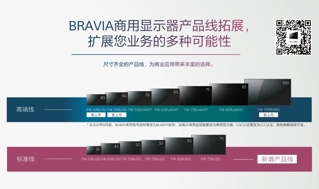 尺寸齊全的BRAVIA商用顯示器產品線,為您帶來更多選擇!