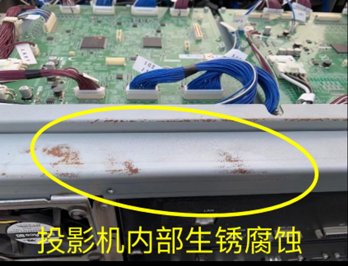 作為電子產品的投影機對濕度也很敏感,如果箱體內進入水汽堆積,就會造成投影機部件氧化、生銹腐蝕,最終故障。而安裝在海邊的設備,由于海風自身的腐蝕性,更會對內部電路板等造成腐蝕。