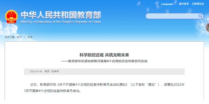 而據央視新聞,近日,教育部印發《關于開展第4個近視防控宣傳教育月活動的通知》,部署在2022年3月開展以“科學防控近視,共筑光明未來”為主題的近視防控宣傳教育月活動。