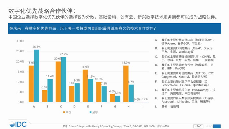 國際數據公司(IDC)于近日發布了《不確定宏觀環境驅動企業持續投資數字化優先策略》研究報告。此研究報告基于IDC月度未來企業韌性和支出調查(Future Enterprise Resiliency & Spending Survey :FERS)2022年第一波,這個月度調查始于2020年的新冠肺炎疫情,其目的是探索與研究企業對宏觀經濟影響的看法、企業業務的優先級、企業的IT與數字化轉型支出、企業的數字化韌性、數字技術如何幫助企業創新等諸多方面,其結果可以非常好的反映數字技術采購和應用情況及未來趨勢,也可以為企業實施數字化轉型提供良好的借鑒。