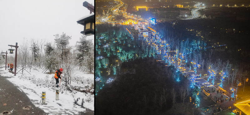光影秀正值春節假期,北方天氣從低溫-4℃起步,預計工期卻不足20天。對洲明團隊來說,從移步換景、虛實融合的互動投影大道,到生態林等地的燈光全覆蓋,不僅品質管控要做好,確保工程務期完成也是一大挑戰。