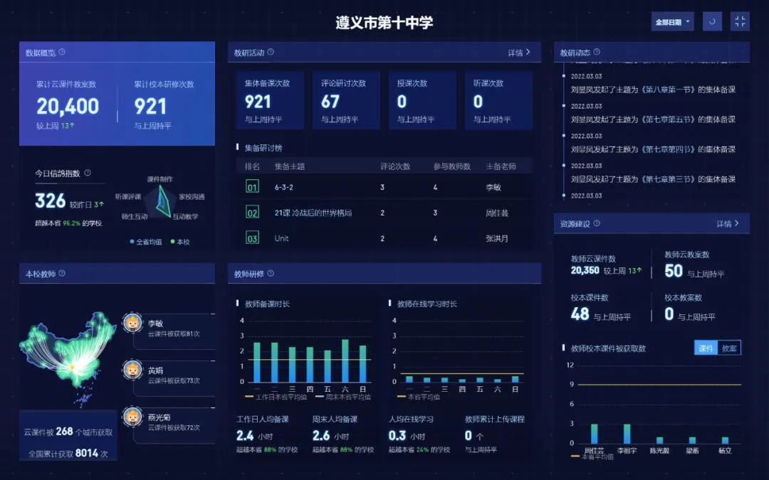 此外,希沃信鴿的多維數(shù)據(jù)采集與智能分析功能,實(shí)時(shí)反映了匯川區(qū)每所學(xué)校教學(xué)教研的動(dòng)態(tài),方便教育局及時(shí)掌握區(qū)域內(nèi)學(xué)校教研的關(guān)鍵數(shù)據(jù),為各項(xiàng)決策工作提供有力支持。