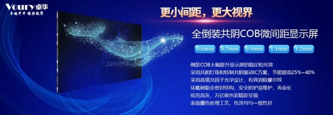 3840Hz高刷新率提高視覺舒適度,14-16Bit灰度處理級別,配合反伽馬校正技術和逐點亮度校正技術,使動態(tài)畫面顯示的更加真實自然,均勻一致。Voury卓華COB封裝LED顯示屏的卓越顯示效果,更符合高端顯示應用和個性化需求,同時COB封裝技術的高防護性及消毒環(huán)境適應性,更適合目前疫情防護的特殊要求。