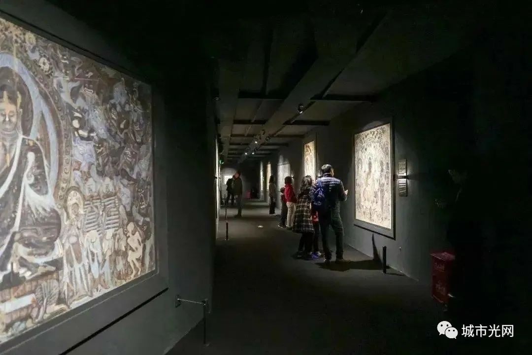 “神秘敦煌”文化展利用數字科技呈現了7個極具藝術意義的1∶1復原石窟,有別于以往“純平面”、“靜止型”的觀展方式,以360度的動感“飛天壁畫”給予參觀者沉浸式的感官震撼。