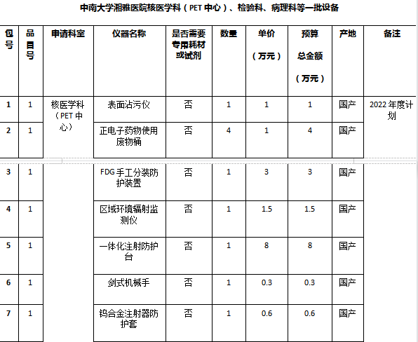 項目名稱:中南大學湘雅醫院核醫學科(PET中心)、檢驗科、病理科等一批設備