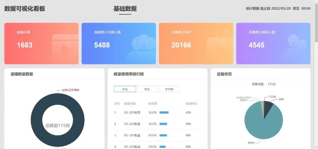 與此同時,錄播系統支持對接學校云平臺,學生線上考勤及學習進度情況智能量化為數據圖表,簡單明了的呈現于老師面前,老師及教務部門輕松掌握學生線上學習情況,高效、穩定及高質量的線上線下教學更簡單了!