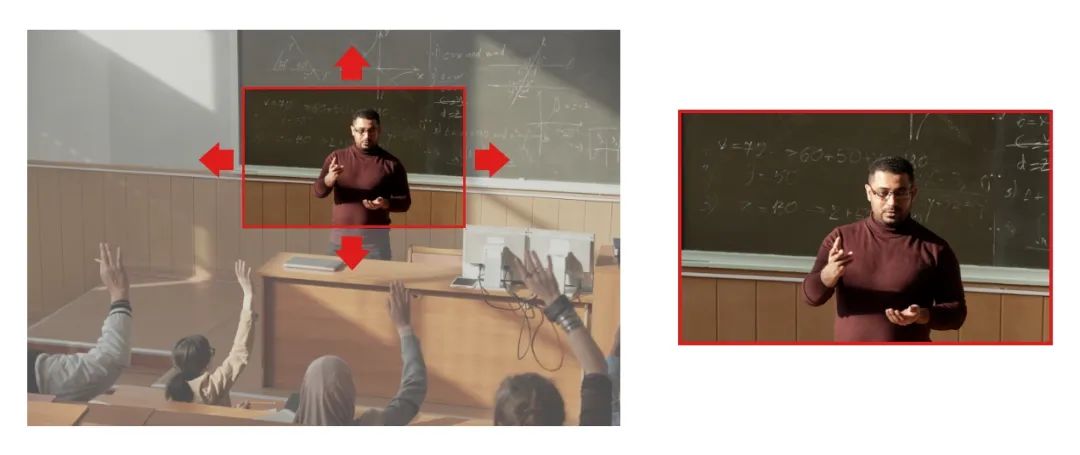 單鏡頭追蹤相機主要利用AI技術識別現有畫面中的人像,自動運鏡將主角置于影像中心,并縮放影像讓主角呈現合適的大小。在跟蹤技術來說,主要是預測主角下一步行進方向持續跟蹤主角。因此,單鏡頭設計最適合在畫面中只有一個主角以及拍攝空間受限于小區域的情況下使用,例如教師在學校教室里教學。