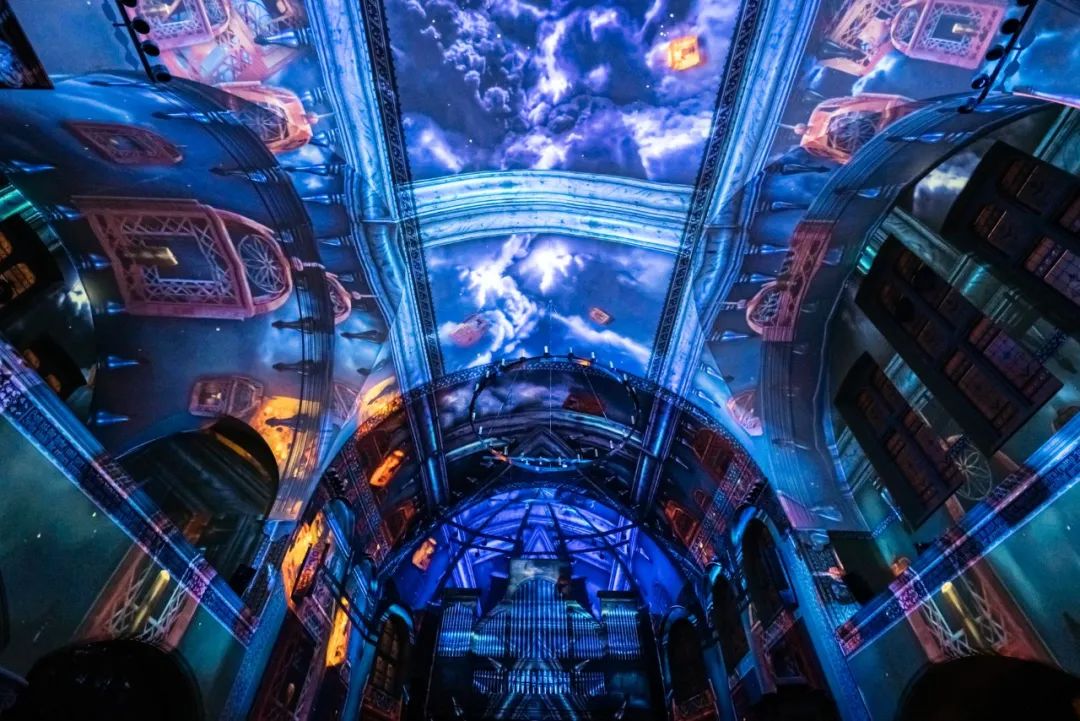 整個建筑的圓頂裝有252臺投影儀,形成了沉浸式360度投影表面,館內外的參觀者均可看到,這使得它成為世界上最大的360度投影面。