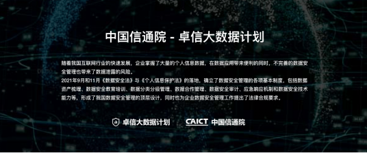 中國(guó)信通院“卓信大數(shù)據(jù)計(jì)劃”于 2021 年初正式啟動(dòng),致力于打造業(yè)內(nèi)權(quán)威的數(shù)據(jù)安全治理及應(yīng)用的全要素解決方案,通過推出多層次指導(dǎo)措施和基礎(chǔ)服務(wù)幫助企業(yè)提升數(shù)據(jù)安全能力,推動(dòng)我國(guó)數(shù)字經(jīng)濟(jì)更加健康、可持續(xù)的發(fā)展。