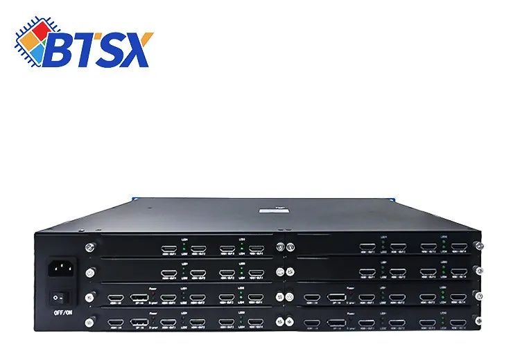 比特視訊推出的BIT-MSE-U2-432是一款基于FPGA處理技術的工業級高性能超高清拼接處理器,可實現32屏以內的所有拼接模式:橫屏/豎屏/奇數屏拼接,4個HDMI/DP輸入接口,32個HDMI輸出接口,其超高清的分辨率最高支持16Kx4K,全硬件實時處理架構,點對點,不變形,不拉伸,無需控制,即插即用,也可根據用戶需求進行定制任意拼接需求。