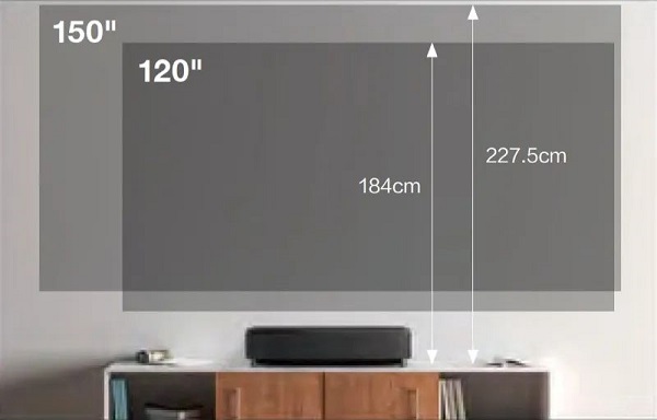 0.16投射比超短焦光學鏡頭與4000流明高亮度,實現150英寸超大屏顯示