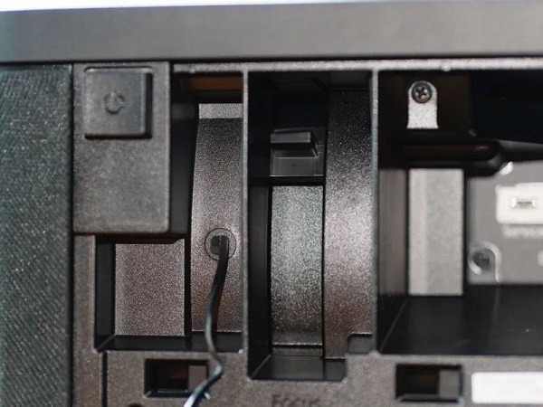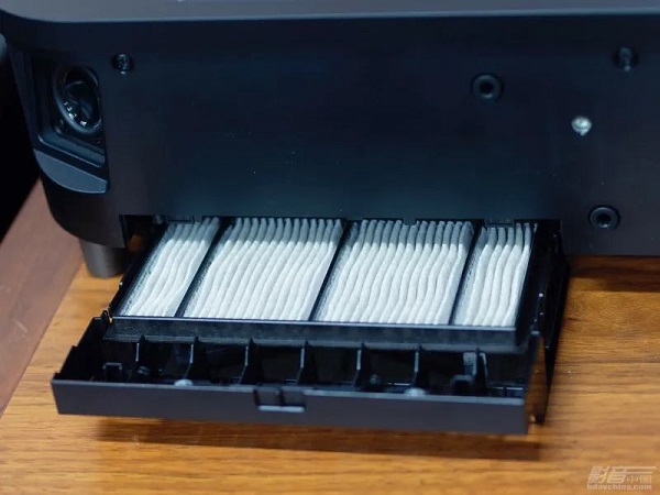 只需掀開正面的防塵網罩,我們就可以清晰地看到愛普生EH-LS800B所搭載的雅馬哈深度定制2.1聲道內置音響系統,包括位于左右兩個角落、專門優化發聲角度的主聲道喇叭單元,采用FR-Port前置倒相孔結構的低音喇叭單元。在雅馬哈定制DSP音頻解碼芯片與多種預設音效模式的支援下,愛普生EH-LS800B可以讓用戶根據各種不同的觀看內容獲得聲場與細節層次俱佳的聽感享受。