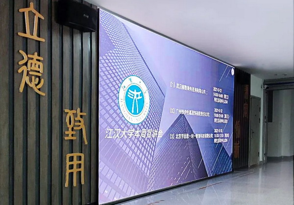江漢大學與MAXHUB的結緣是在2019年。彼時,江漢大學已經成為湖北省“國內一流學科建設高校”和第一家擁有全職院士的湖北省屬高校,為了進一步提升學校辦學質量,實現鑄魂育人的任務,江漢大學希望能夠引入智能化軟硬件設備,為學校招生就業工作提供助力。