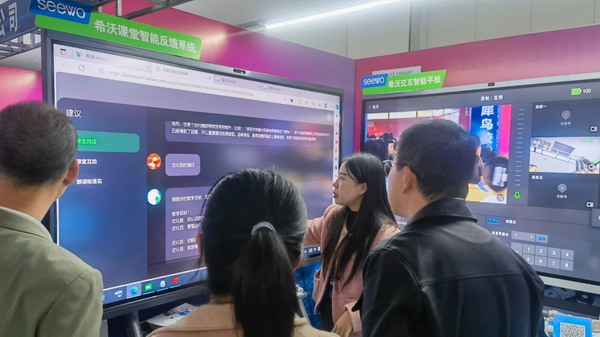 其中,在希沃教學大模型正在內測的基礎上,希沃AI教學終端——希沃第七代交互智能平板、軟件平臺——課堂智能反饋系統在現場進行演示,呈現人工智能技術與教育數字化的深度融合,以小數據、AI、數字化技術等新科技推動教與學模式的創新。