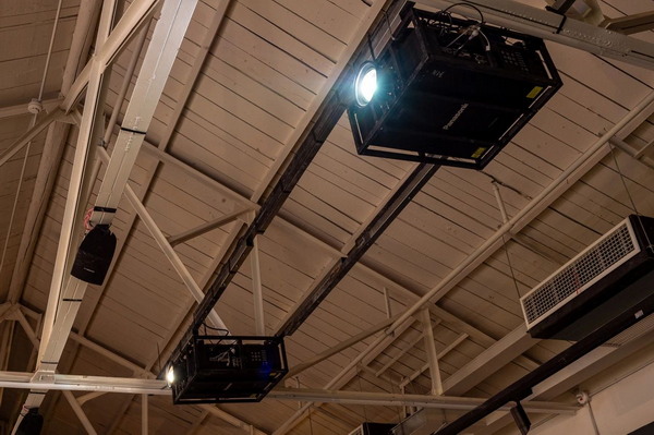 兩條光影紗幕垂墜于空間之中,2臺松下PT-FRQ100C系統(tǒng)工程投影機為其賦彩著色。半透明的紗幕,使本就奇幻的場景更添迷幻空靈。不真切的寫意美感,讓人久久沉醉。
