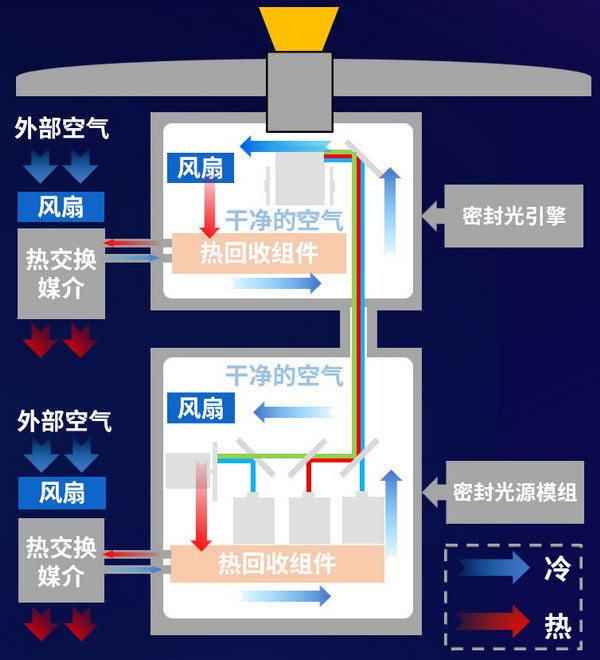 在全新激光光源的加持下,玲瓏系列NC1503L+的光源壽命長達50000小時[3],畫質表現更持久、穩定。秉承CCT全密閉內循環防塵散熱技術,實現強力防塵&高效散熱兩不誤,為影院持久穩定的高品質放映保駕護航。