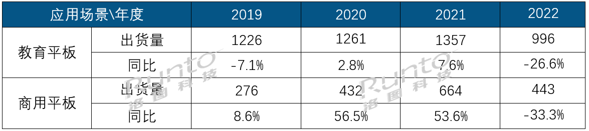 根據洛圖科技(RUNTO)最新發布的《中國大陸交互平板市場分析季度報告(China Interactive Board Market Analysis Quarterly Report)》,2022年,中國大陸大尺寸交互平板出貨總量為144萬臺,同比2021年下降28.9%,同比2020年下降15.1%。