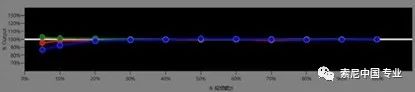 (2)Gamma調整:默認Gamma偏低,設置為2.6才接近參考值2.2。調準Gamma 后亮度輸出曲線也挺準,緊貼目標值。