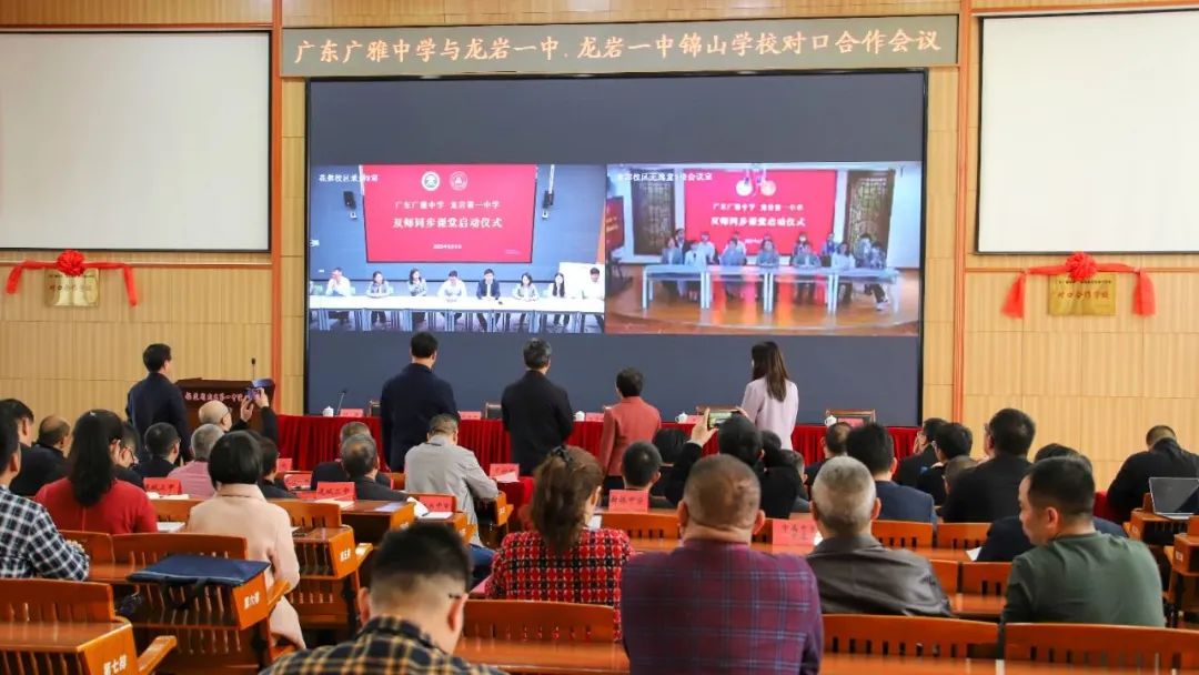 技術支持下,廣東廣雅中學本部、廣東廣雅中學花都校區與福建龍巖第一中學舉行了雙師同步課堂啟動儀式。廣州、龍巖兩市對口合作將按照“相互支持、優勢互補、互惠共贏、共同發展”的原則,圍繞高考備考、學科競賽、教學改革、教師培養等重點工作進行深入合作,實現資源共享、特色共建、合作共贏,共同促進雙方教育教學高質量發展。