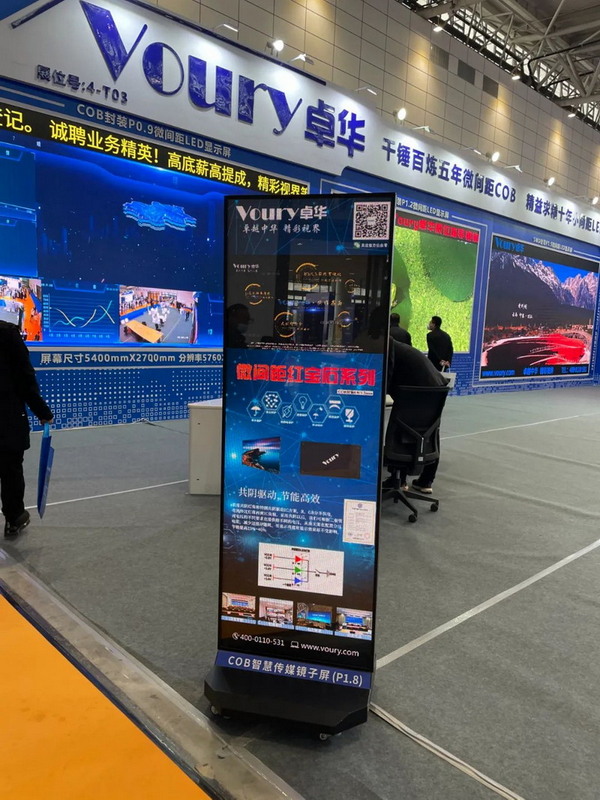 Voury卓華結合先進的COB封裝工藝,深入市場一線,針對廣告傳媒和會議室的使用場景推出了COB智慧傳媒鏡子屏不但具備COB產品的所有技術優勢,又能滿足用戶廣告傳媒的展示需求。