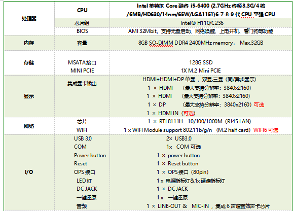 OPS電腦:Baytrail-J1800/J1900/Baytrail-CR Z8350/GeminiLake-N4000/N4100/J4105/J4005 CPU/HM76+2-3 代CPU/HM86+4代CPU/Skylake-u+6-7 代CPU/Whiskeylake-u+8-10代CPU/tigerlake-u+11代CPU(最新支持5K顯示或者8K分辨率顯示OPS電腦方案)。