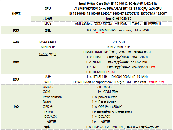 OPS-C電腦:HM76+2-3代CPU/HM86+4代CPU/H77+2-3代CPU/H81+4代CPU/H110+6-7代CPU/ H310+8-9代CPU/H510+10-11代CPU。
