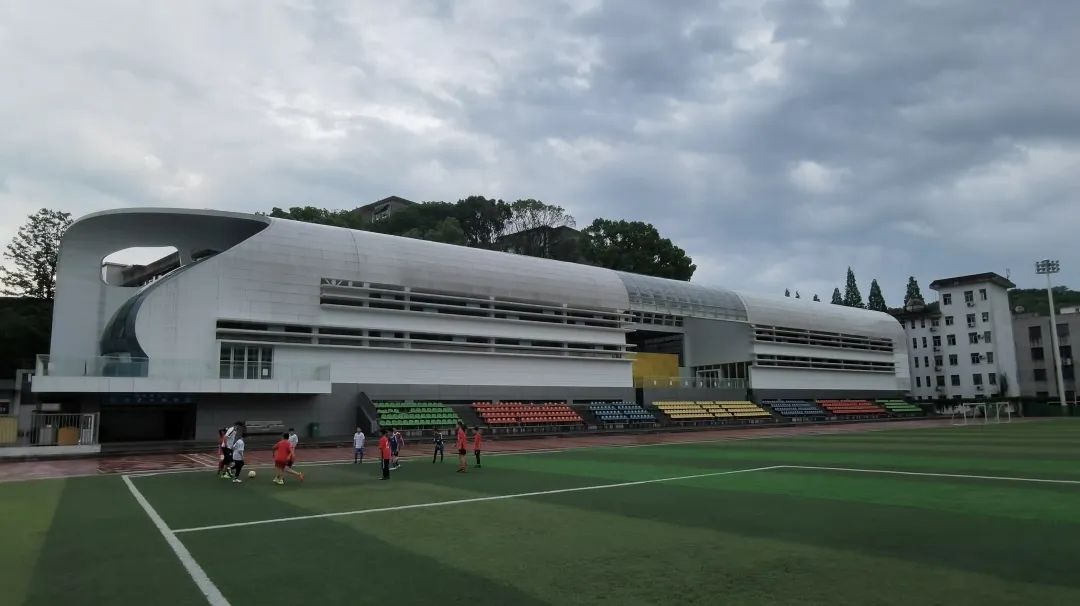 湖南株洲中車體育館坐落在湖南株洲市中車鐵道學院體育場,外形類似一輛飛馳的高鐵,象征著中國高鐵技術領先全世界。