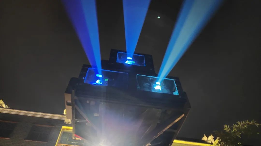 為了讓這輛靜止的高鐵“動”起來,6臺光峰AL-TU33K,搭配4.5-8.2:1鏡頭,將畫面投射到100m外的建筑墻體上,整個投影面積高14m、長107m,在投影距離較遠、面積較大的條件下,依舊呈現出高亮度和色彩優異的畫面。
