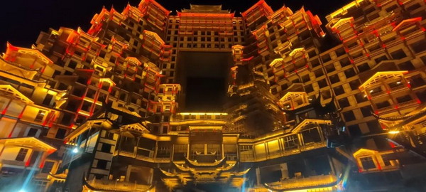 七十二奇樓傲立于三千奇峰之巔,八百秀水之畔,高達109.9米,據稱是中國上下5000年以來最高的民族建筑,并于2019年成功申報吉尼斯世界紀錄——全世界最高的吊腳樓形態建筑。