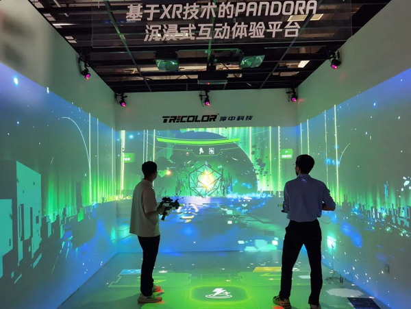 領導巡展期間,石景山區李新區長來到我們的展區體驗了Pandora所塑造的沉浸式射擊游戲,并與產品同事進行深入交流,對我們的產品和相關技術進行了解。