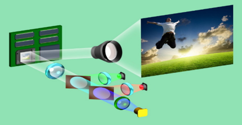 此外LED光源具有色彩好的優(yōu)勢,傳統(tǒng)燈泡或者激光光源采用單色光源搭配熒光輪和色輪的方式,色彩不純凈,因此色域不高。LED光源采用RGB三色光源,免去了色輪,沒有熒光輪和色輪組件,構(gòu)造簡單,發(fā)熱量低,穩(wěn)定性更高。同時加上LED光源色彩純凈的優(yōu)勢,因此其畫面色域高,色彩還原也準確。