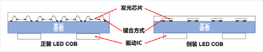 COB封裝有正裝COB封裝與倒裝COB封裝。