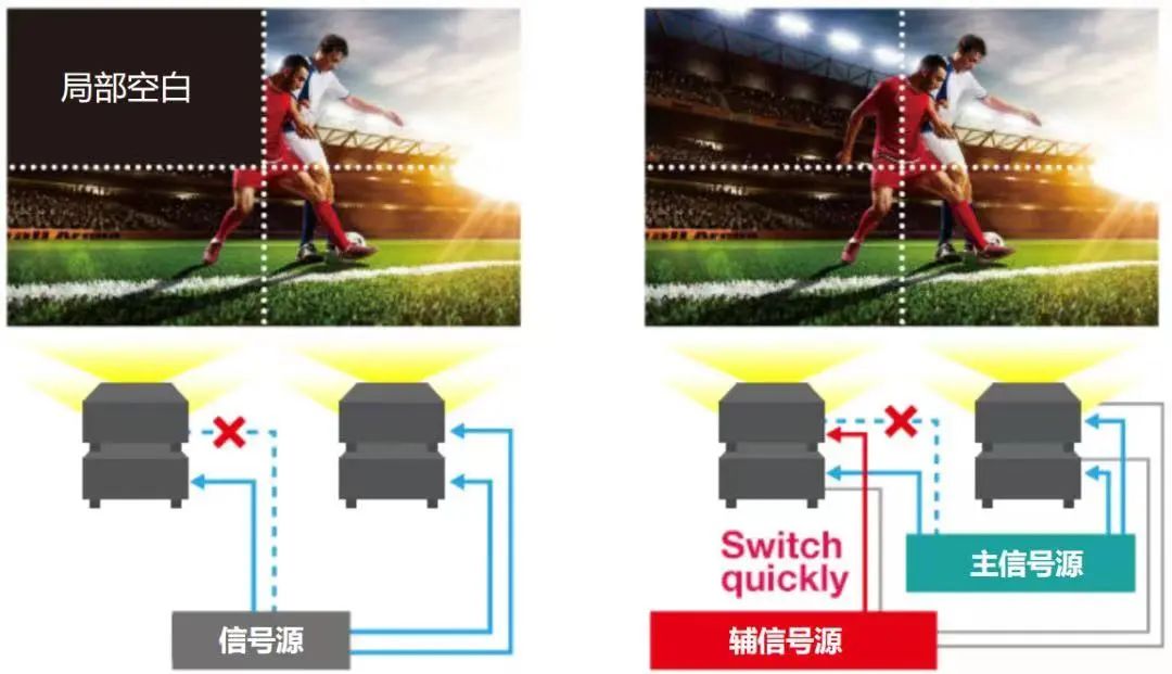 備份信號輸入功能能夠在信號丟失的情況下,0.3秒內進行主備信號的自動切換,保障不中斷的信號輸出。