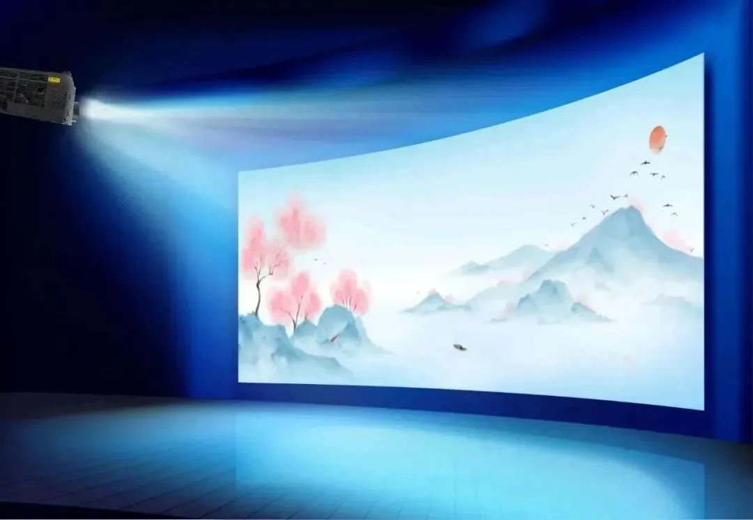 案例說明:使用9臺BC9K液晶激光投影機,通過拼接融合的方式,打造巨幅弧形畫面,讓展廳更顯沉浸感。