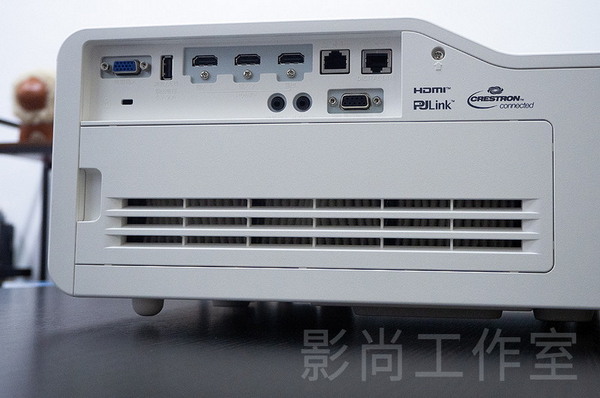 作為一臺(tái)超短焦反射投影機(jī),松下PT-GMZ510C的體積比常見正投機(jī)型更寬大,整機(jī)重9.5公斤。投射比為0.235-0.288:1,能在離墻1厘米的距離呈現(xiàn)80英寸圖像,而且最大可以投影120英寸畫面而四角清晰。它的優(yōu)勢(shì)是可以緊貼墻壁放置,安裝更方便,不占用桌面。而且,投影光線不會(huì)照射到演講者的眼睛,畫面也不會(huì)被遮擋。