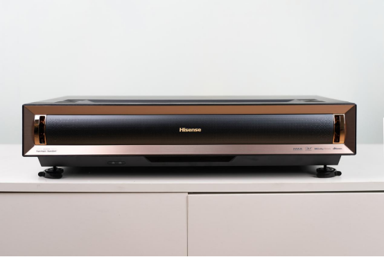 除了覆蓋前臉大部分區域的音箱外,海信激光電視L8K還引入了影院式的多聲道分體式設計,機身上方兩側分布有天空音箱能夠將2D平面聲場拓展為3D立體聲場,另外還有能將低音下潛至40Hz的獨立低音炮,如此強大的音頻配置相信能在之后的影音實測中給到一份令人欣喜的答卷。