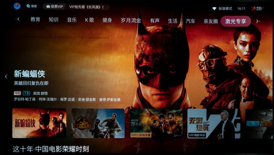 憑借與實體影院類似的成像方式,海信激光電視L8K可輕松展現影視大片的膠片感,為進一步發揮優勢,海信專門為這款激光電視提供了4K MAX、激光專享等影視專區,豐富了影視資源,打通觀影全鏈路,這些都為海信激光電視L8K持續加分。