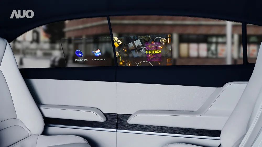 〝交互式透明智慧車窗〞將高透明Micro LED顯示器整合到車側窗,并搭載觸控功能,進行娛樂、在線視頻會議及安全示警信息顯示,引領沉浸式座艙創新感受。