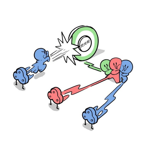 雙色激光通過熒光輪激發出綠色熒光形成RGB三色