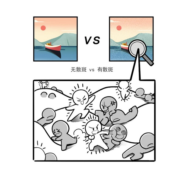 三種光源各具特色,施展本領服務于市場。然而三色激光雖以其卓越的色域覆蓋著稱,卻也不可避免地面臨著“散斑”問題的挑戰,這一問題顯著削弱了觀眾的觀影享受,長時間觀看甚至還可能造成視覺疲勞和身體不適。