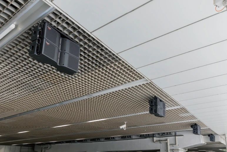 天花板上整齊排列著11組揚聲器,營造出沉浸式的音效空間