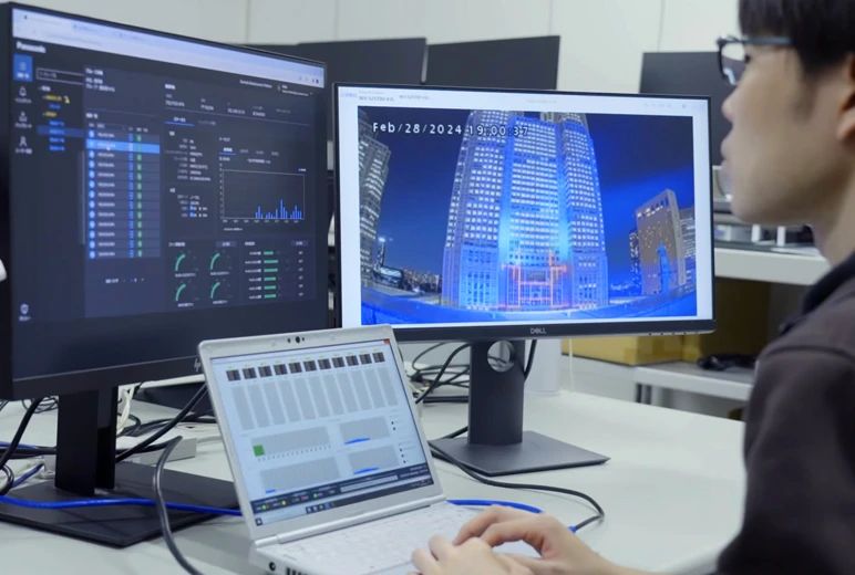 此外,永久性的投影面臨的另一個問題是檢查和維護投影機。針對投影機長期暴露在戶外、易受環境影響的問題,特別是這個項目預計長達五年的運行周期,一切都需要在一年四季的各種條件下可靠運行。因此,我們特別引入了松下最新推出的遠程托管服務2。這項服務通過全年無休的在線監控,由專業團隊密切關注設備狀態,確保系統在各種氣候條件下都能穩定高效運行。一旦監測到異常,系統會立即發出警報,并迅速調動最近的維護團隊進行響應與修復。