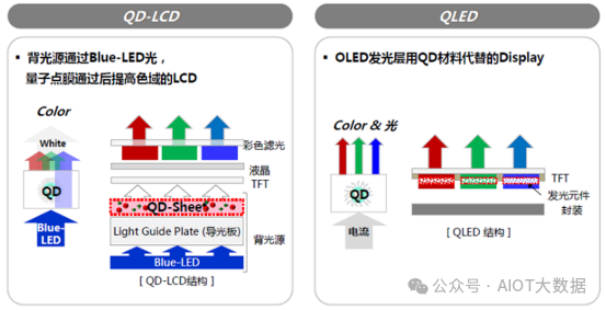 QLED技術的核心在于“Quantum Dot(量子點)”,這與QD-OLED中的QD是同一概念。然而,QLED是基于LED白光背光的傳統LCD顯示屏進行升級的。它充分利用了量子點的特性,將量子點光學材料置于背光源與液晶面板之間,形成一層量子點薄膜。這層薄膜的存在,旨在解決普通LCD電視背光色彩不夠明亮、鮮艷的問題。通過藍光LED照射附有紅色和綠色量子點的光學材料(QDEF膜片),QLED技術能夠得到高純度的白光,并還原出更加絢麗多姿的色彩。