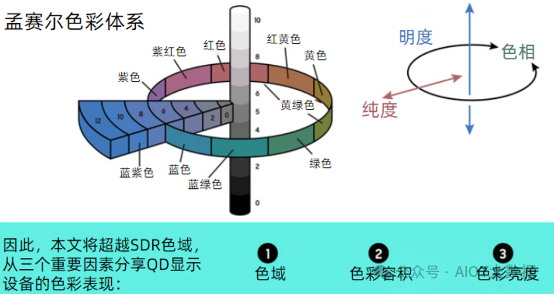 在比較現代顯示設備的色彩表現時,將視野從SDR(標準動態范圍)擴展到HDR(高動態范圍)是至關重要的。HDR技術為顯示設備帶來了動態且更高的亮度,使得色彩表現更加豐富和真實。為了全面評估顯示設備的色彩表現,我們需要考慮三個關鍵因素:色相(Hue)、純度(Chroma)和明度(Value)。