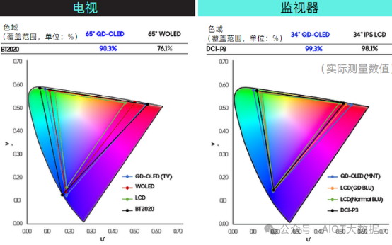 有消息稱,在色域值的比拼中,QD-OLED的表現堪稱驚艷。據SGS公司的權威測試數據顯示,在極為嚴苛的BT2020色域標準下,WOLED電視的覆蓋率僅達到約70%。而QD-OLED電視則一騎絕塵,其色域覆蓋率超過了90%,成為目前市場上唯一一款在該標準下突破90%大關的電視產品。