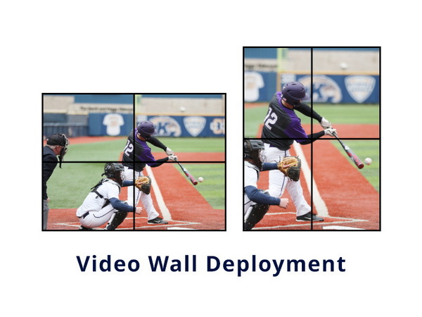 方案。支持以橫向或縱向模式安裝的顯示器。搭配多個解碼器和屏幕的組合可配置出您需要的視訊墻效果。