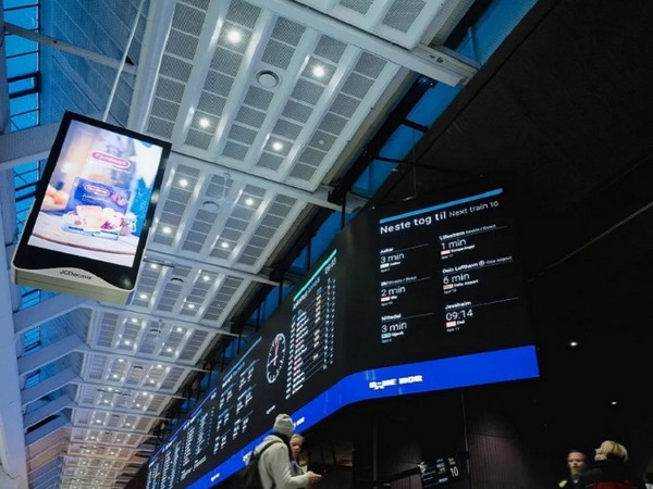 近日,在奧斯陸中央車站——挪威最繁忙、最大、最主要的鐵路樞紐,聯建光電130㎡的LED弧形屏正式點亮。
